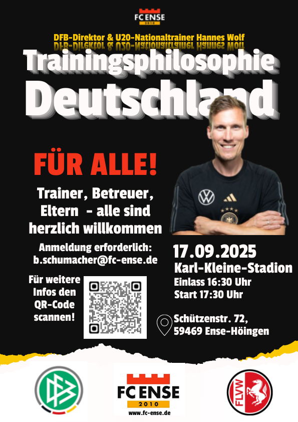 Für alle Fußballfans aus der Region gibt es am Mittwoch, 17. September 2025, ein außergewöhnliches Ereignis: Hannes Wolf, DFB-Sportdirektor für Nachwuchs, Training und Entwicklung sowie Trainer der U20-Nationalmannschaft, besucht Ense-Höingen. In einer öffentlichen Trainingseinheit zeigt er die neuen Ansätze der „Trainingsphilosophie Deutschland“.