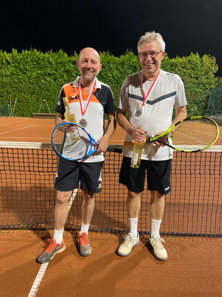 Am Freitagabend wurde auf der Anlage des Höinger SV bis spät in die Nacht gespielt – die letzten Ballwechsel endeten tatsächlich erst kurz vor Mitternacht. Das Highlight des langen Tennistages bildete bereits das erste Finale der diesjährigen Gemeindemeisterschaften: Bei den Herren 60 setzte sich Stefan Feldmann in einem tollen und umkämpften Endspiel gegen Dieter Langer durch und feierte damit den ersten Titelgewinn des Turniers. Beide Spieler lieferten den Zuschauern ein spannendes Match mit vielen langen Ballwechseln und großem kämpferischen Einsatz.